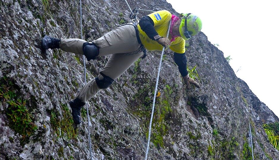 Durante el proceso de evaluación, previo al acto de graduación, los jóvenes voluntarios realizaron una caminata desde la entrada al Parque Balboa hasta el turicentro La Puerta del Diablo, donde acamparon para iniciar los descensos libres y las prácticas de rescate de víctimas.