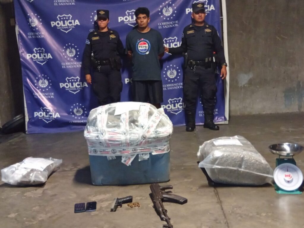 Erick Alexander Mira Henríquez fue capturado durante un operativo de la Fiscalía General de la República en el sector conocido como El Trébol, en Santa Tecla, donde le decomisaron droga y armamento de grueso calibre.
