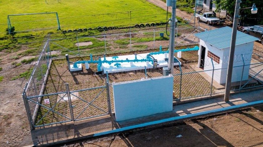 El proyecto incluyó el diseño y construcción integral del sistema, el equipamiento de un pozo de 200 metros de profundidad, una cisterna, una subestación eléctrica y un equipo de bombeo con capacidad para producir 186 galones por minuto.