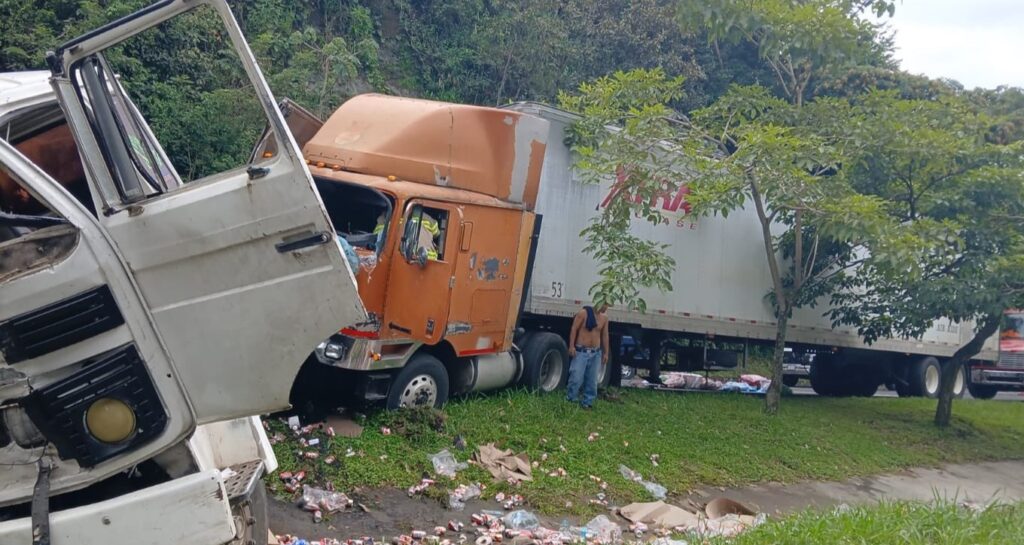 A causa del percance se produjo un derrame de aceite, que fue atendido por elementos del Cuerpo de Bomberos. Uno de los camiones volcó y la mercadería que transportaba quedó esparcida sobre la vía.