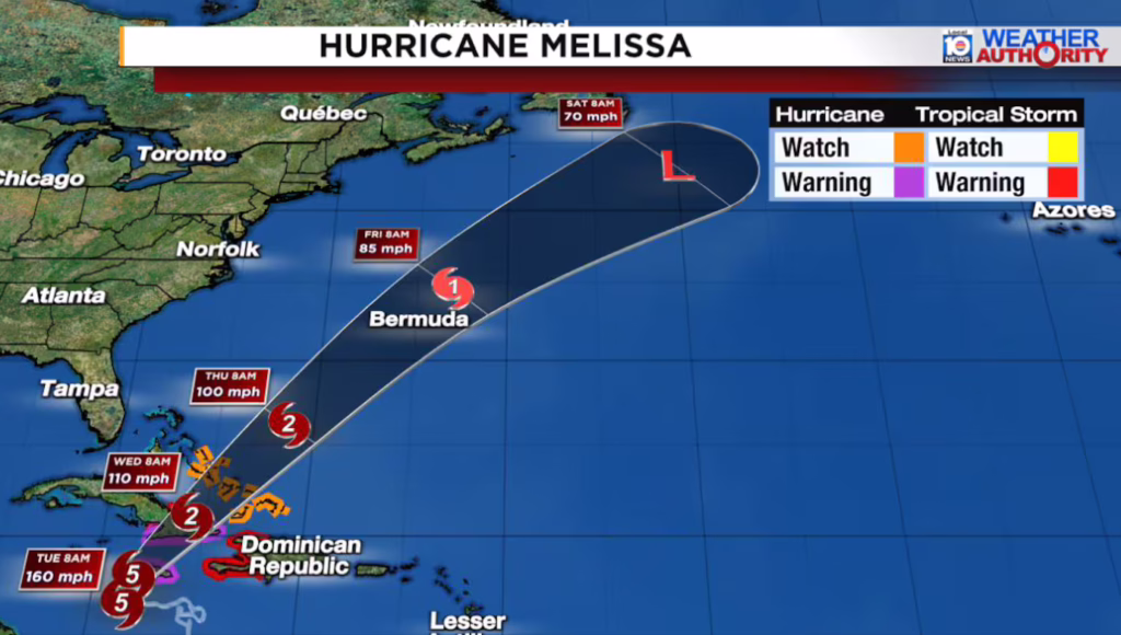 Melissa es el huracán número 45 de categoría 5 registrado (los registros oficiales datan de 1851) en la cuenca atlántica y, sorprendentemente, el tercero de esta temporada. Solo la destructiva temporada de huracanes de 2005 registró tantos o más huracanes de categoría 5 en un solo año, con Emily, Katrina, Rita y Wilma, marcando una de las temporadas más mortíferas y destructivas de la historia.