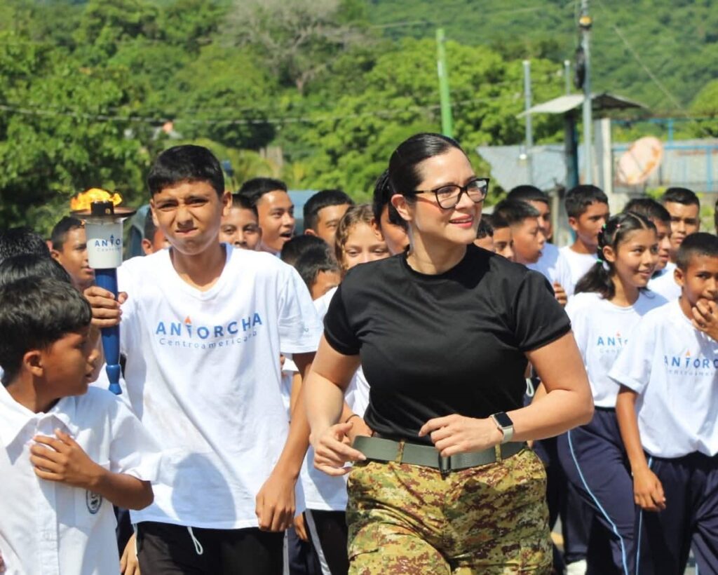 “En nombre de El Salvador y del Presidente Nayib Bukele, recibimos con orgullo la Antorcha que representa la paz de nuestros pueblos”, expresó la funcionaria durante la ceremonia oficial.