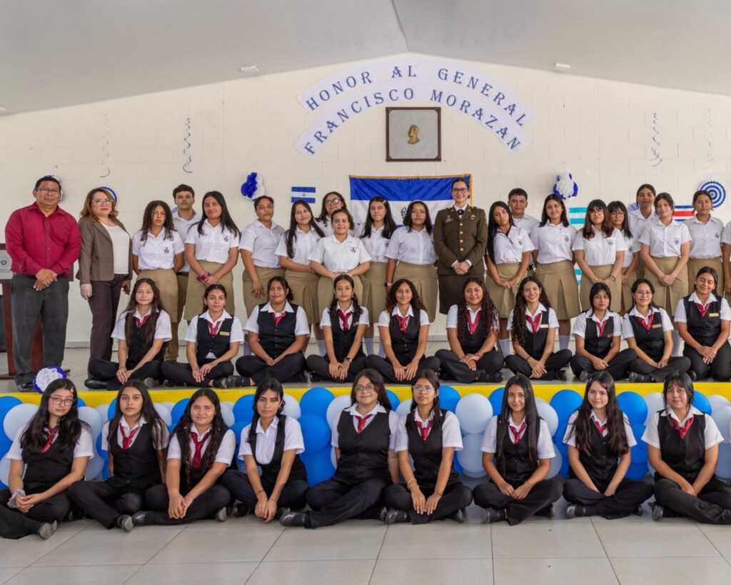 Dentro de su agenda, la ministra también acompañó a estudiantes y docentes de Tercer Ciclo y Bachillerato en el acto cívico desarrollado en el Centro Escolar General Francisco Morazán, de San Salvador.