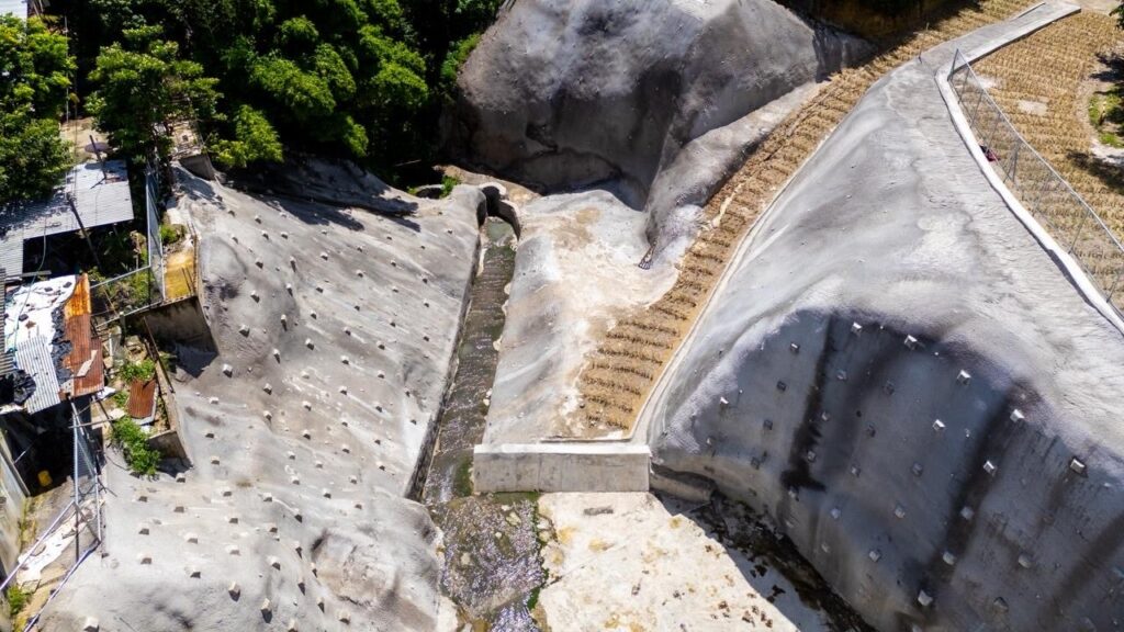 Como parte del proyecto, se construyó un muro soil nailing en un área de 1,598 metros cuadrados, tres gradas disipadoras para la escorrentía de aguas lluvias y se aplicó concreto lanzado en 1,300 metros cuadrados, entre otras intervenciones.