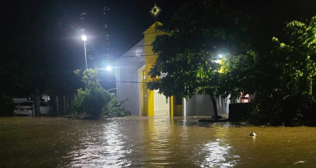 Las inundaciones también afectaron la ermita San Óscar Arnulfo Romero, que quedó bajo el agua debido a las fuertes lluvias.