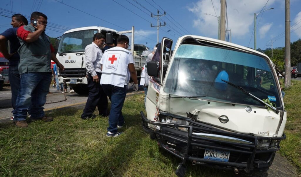 Al menos cinco personas resultaron lesionadas en un fuerte accidente de tránsito registrado sobre el kilómetro 14½ de la carretera a Comalapa, en el distrito de Santo Tomás, San Salvador Sur.
